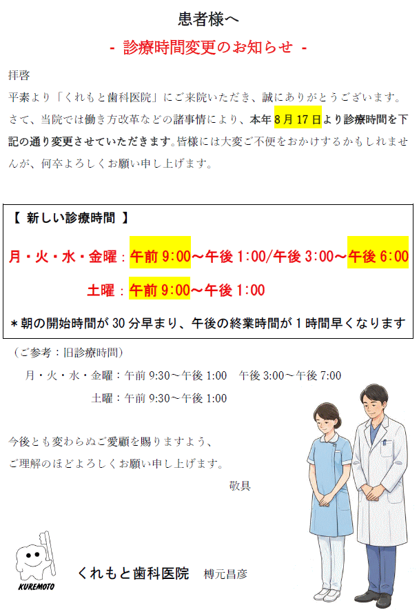 診療時間変更のお知らせ